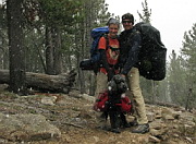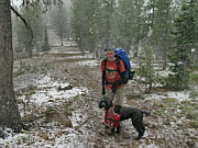 8/15/2009 1:37:24 PMCaption  :  Mike, Kira and Ninja on the hike out, starting to snow harder.